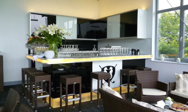 Die Anlage an sich ist sehr schön und mit viel Grün drumherum angelegt. Es gibt ein Edelitaliener als Restaurant auf dem Grundstück, einschließlich einer Bar, die aber aus den Tischen des Restos besteht. Die Preise für Speisen und Getränke sind happig, aber in einem gepflegten Ambiente.
