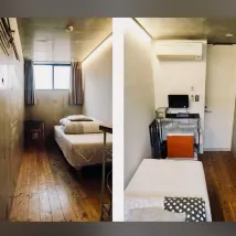 前台和住的地方是分開的,先去前台辦理入住再去對面的樓層住,前台看是外國人用日式英語説話但我沒能聽懂所以用了翻譯器,不知有沒有看到我的大行李箱子,給到的鑰匙是三樓最盡頭的一個房間,沒有電梯,樓梯很窄,一層一層把巨大的行李箱抬上的三樓,並且那個房間用鑰匙不能從外面鎖上,應該不能算酒店,屬於是私密性較好的青旅,但也看到有大叔住,隔音較差能聽到每個房間發出的動靜,廁所是男女分開的,但是浴室在一樓