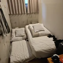 價格在東京來說算很不錯了,附近有超市很棒,離地鐵站有點距離了,搭乘公車會比較方便,我住的房間,床墊很不穩,不能睡太邊邊,某天早上我就不小心從床上摔下來,牆壁不知道為什麼有一個握把,讓床墊沒辦法靠攏牆壁,但真的都還可以過得去,房間採用鑰匙的方式,我覺得還不錯,這樣使用冰箱不會因為沒有用房卡而斷電,最後我覺得插座的位置有點不太好,房間的桌子也有點小沒有椅子只能坐在床上,但為了便宜的價格在東京求生存,這一切都還算過得去
