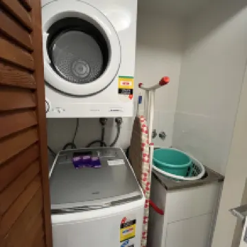 房間整潔,廚房用具一應俱全可以自己做飯。有洗衣機和烘乾機