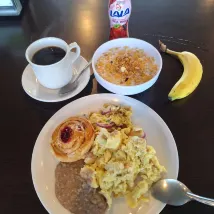 早飯很好,位置不錯,性價比高,衞生情況良好。缺點是附近沒有吃飯的地方,而且房間空調聲音過大,靠近城市主要交通幹線。