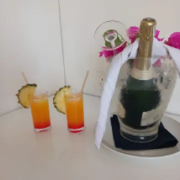 來自住宿之回應: Bonne journée LesliieRLG Merci d'avoir pris le temps de laisser vos commentaires suite à votre récent séjour parmi nous. L'équipe et moi avons été heureux de savoir à quel point vous avez apprécié les cocktails. Il nous est facile de nous perdre dans la beauté des couchers de soleil sur l’île Maurice. Au plaisir de vous accueillir à nouveau lors de votre prochain voyage sur l'île. Cordialement.