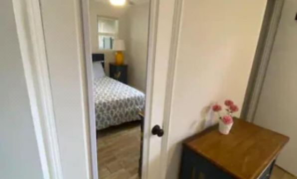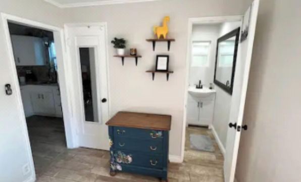 Inside, you'll find a cozy bedroom with a comfortable queen-size bed and a modern, full kitchen ready for your culinary adventures. The bathroom has been beautifully updated with a luxurious rainfall shower head to help you unwind after a day of exploring.