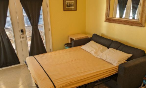 The guest house is well-equipped with everything you need for a comfortable stay, including a mini-kitchen, washer and dryer, a queen-size bed, loveseat sleeper sofa (queen), kitchenware, WiFi, TV, and all linens. It is perfect for people coming to Tucson for work, staycation, or to enjoy the city. Sabino Canyon and Tucson Airport is 25 min away.