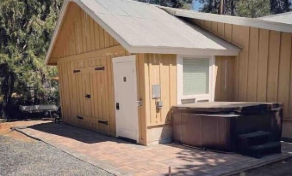 Located on a large lot alongside a creek. Fans, portable “swamp” cooler for summer. Electric heaters, blankets and fireplaces inside for warmth and ambiance, without the hassle of smoke, burning wood and cleaning ash. Wood-burning fire pit outside for gathering and roasting marshmallows (check CalFire avail. Wood not provided). BBQ. Cornhole. Lots of vintage linens, kitchen gear and decor. Special rate for RV hook-up available. Seasonal Hot tub/Spa for $40 extra fee and waiver--April-December, after/before the winter snow and rains. There are also public/shared heated pools/spas at the CA Hot Springs Resort, heated with our area’s rare, clear natural hot springs water year-round. Go to the CA Hot Springs website for fees and days/ hours of operation.(currently closed for renovation)