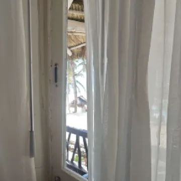 L'hôtel est un peu vieillot et aurait besoin d'une remise à neuf au niveau de la piscine, des portes fenêtres et des installations électriques (Il faudrait une prise près du lit pour charger le téléphone qui ne soit pas dépendante de la lumière, pouvoir allumer la lumière sur le balcon, des lumières indépendantes les unes des autres), mais la chambre est propre et agréable.