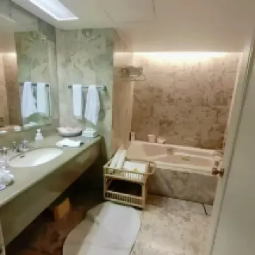 房間非常寬敞,讓我能夠徹底放鬆。浴室也很棒。這次我沒有用餐,但下次入住時我想嘗試一下。