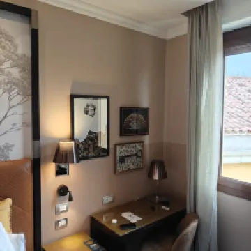 最開始的時候給了一間巨差的房間,一樓,走廊盡頭是酒店公共廁所,窗外面是後廚抽煙區,隔壁是後廚工作區,很吵,跟網上圖片也不一樣,溝通了一下,辦理入住的姐説這個房間是有什麼問題嗎? 我們説是隔壁很吵,再三溝通下他們同意換房間,換到了庭院裏,然後帶我們看了新的房間跟我們説離好東西出來換房卡去新的房間,等我們理好訊息到入口區域後又改口説新的房間沒有整理好,需要我們在前台等待?太離譜了,華人劉宇?我感覺這是華人歧視,對威尼斯的印象差從酒店開始,這是在歐洲住過最差的酒店。