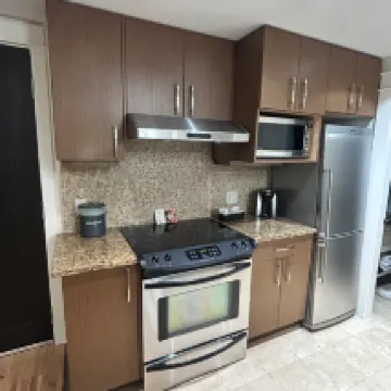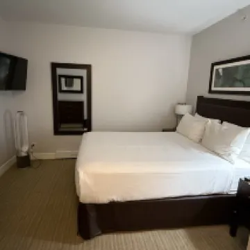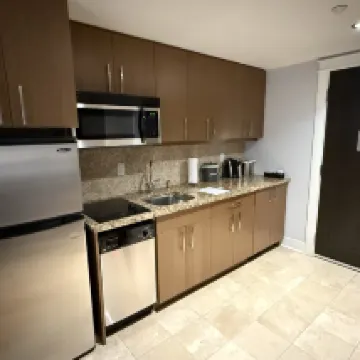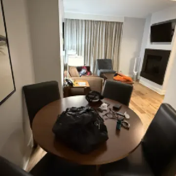 位置稍微偏離市中心;如果你有車的話,這不是問題。街邊停車沒問題;你每晚只需支付 19 美元。這間公寓對兩個人來說很大。設施狀況良好。有兩個戴森風扇,一個在客廳,另一個在臥室。我們是夏天來的,但夜間溫度在 12-14 度左右。房間裡沒有空調還不錯,即使不開風扇,打開陽台門以及臥室和客廳的底窗,房間仍然感覺足夠涼爽。房間裡有帶烘乾功能的洗衣機,可以免費使用,但你必須自備洗滌劑或在前台購買。我喜歡這裡的居住環境和新鮮的空氣。由於它遠離主幹道,我享受著沒有交通噪音的寧靜夜晚。