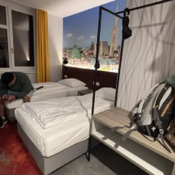 這家很棒的飯店位於維也納市中心外,但步行只需30-40分鐘即可到達(步行10分鐘,搭乘電車20分鐘)。街對面就有一家大型超市(不過附近其他店家週日都不營業)。飯店工作人員很樂意幫助我們解決一個特殊問題(我們需要租用輪椅);他們聯繫了一家提供此類服務的公司,並幫我們預訂了一輛。
