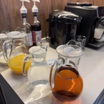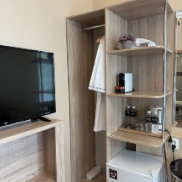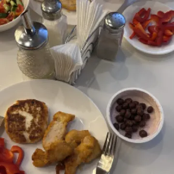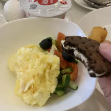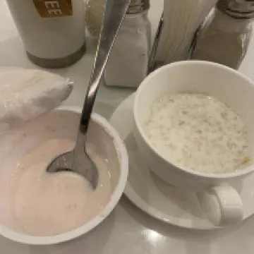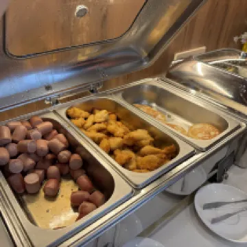 Меня впечатлил завтрак, какая вкусная овсяная каша и блины с ветчиной и сыром. Кофе зерновой, также в течение дня можно пить кофе с чай с сушками и конфетами. Приятно.