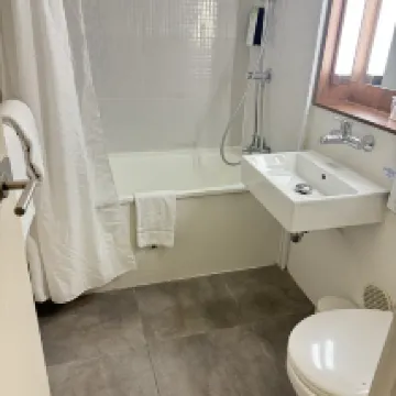 酒店有點舊、待翻新。有免費停車場。 房間空間充足、有淋浴設施、熱水煲提供。 揸車3分鐘附近有大型超市及快餐廳
