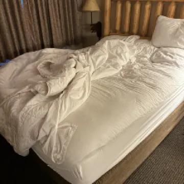 房間很大,床品很新,除了空調窗機有點吵,其他都很OK,早餐在美式裏面算不錯的。5月份温度還蠻低的,酒店外面的烤爐很有氛圍
