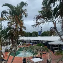 I’m not to impressed with this hotel at all and won’t be back. There was dust on the walls, cobwebs on the ceiling in the corners. Hair on the bathroom floor. Check in was at 2pm and I had left by 6:30pm. People walking around outside being loud and swearing their heads of back and forth. The kettle was filthy inside and had to scrub it to make sure it was clean before use. The smoking area ashtray was also removed from the table so there wasn’t anywhere to put out the smokes. Poop was a mess in the water debris and things on the bottom. I didn’t eat at the restaurant they have as the cost was too expensive according to the menu. The rooms look so much better in the advertisement than in person. Photos on the site and other travel sites are heavily edited. The pillows were flat and used way too much. The pillow cases had stains on them. Sheets were too small to fit on the mattress properly. There was some sort of stain in the doorway outside that looked like an old blood stain. Nicole that manages the place is from what I seen with my interactions with her very polite and friendly, but for the room I had $179 wasn’t worth it. I didn’t even want my money back, I just wanted to leave.