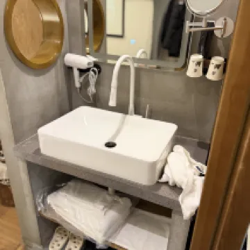 房間很小,有點吵,因為樓下就是街邊的咖啡館,不過工作人員盡力了(提供了白噪音機和不錯的耳塞)。我們費了好大勁才找到飯店的入口。地板上到處都是香(我想應該是飯店裡幾隻貓留下的)。因為我們對香過敏,所以比原計劃提前離開了。 床單和床都很舒服,房間裡有熱水壺和盥洗用品。退房時飯店還送了我們一些小點心。