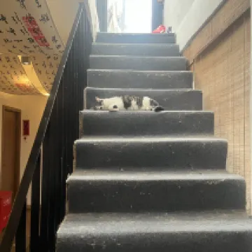 避雷啊!!超級爛,在一個很破敗的居民樓裏面,很臟很臭,房間衞生間超級超級臭,真的沒見過這麼臭的,為了遮臭味不知道加了什麼香薰,更臭了。房間也臟,窗簾牆壁都是不明污漬。早上超級無敵吵,根本沒法睡。樓下是早市,每個商家攤位前都是一個大喇叭在喊,窗户根本無法隔音。本來是小孩想跟貓貓玩才定的這家,過來衹見到兩衹貓貓,而且很怕人,商家也不讓跟貓貓玩,説貓貓膽小,問是否能給小孩一點貓糧或貓條喂一下,也不肯。酒店沒有一點服務的,唯一的服務就是走到防盜門前給提了一下行李,其他沒了。真是從來沒住過這麼垃圾的酒店,也不知道那些好評咋來的。避大雷吧