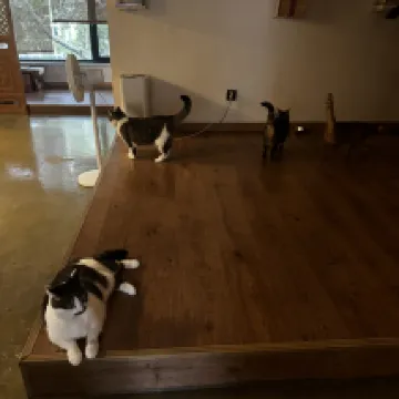房間很漂亮,美中不足的是,要看電影時就得把全部燈都關了才能看😅 很不方便。衞生方面有待提高。貓咪們很好客,會叫門探訪、還有**服務。