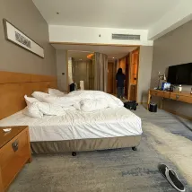 入住體驗感還不錯的,特別是早餐很好吃哦,衹是有一點,早上很早房間就有鈴聲,我睡眠淺雖然這個音樂鈴聲很小但還是叫醒我了,房間很大,對了提一個建議,酒店應該配洗衣房好些,雖然有送乾洗服務,但是我覺得該配套的還是要有,不過酒店睡滿24小時這個是真的好,還有周圍交通方便~