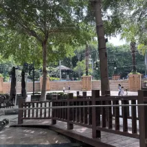 設施已經老舊了,衝著有親子房套餐定的,萌寵樂園也不大,太熱了,服務挺好的,就是這幾天可能是下雨的原因,被子睡了孩子一直癢