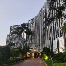 酒店就在軟件園二期西門,兩個購物中心之間,停車方便。前台阿贏服務周到,熱情大方。房間有點味道,及時換了一間,泳池一覽無遺。住🉐️挺好的,孩子們玩得很開心。下次再來。