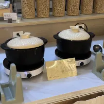 深夜粥道:有小米粥,黑米粥,吃起來很暖和,還有小烘糕,配了鹹菜鹹蛋和小籠包,也有白糖的,相當人性化,但是要用砂鍋熱的話,最好放一個拿蓋子防止燙傷的抹布,或者其他,蓋子太燙了 設施:不錯 衞生:不錯 環境:隔音不錯,很好睡 服務:有禮貌