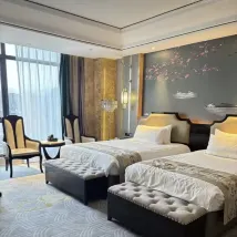 在網上看了許多酒店,最後有幸選擇你家,楊經理熱心地幫我們升級房間,服務員都很隨和態度好,房間乾淨整潔,裝修風格歐式,楊經理還告訴我們那家新美味園旗艦店,價廉物美,食物新鮮。停車也方便。下次有機會來還選你家酒店。