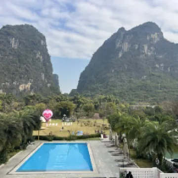 酒店非常棒,門口有一個私人的大草坪,還有超大的泳池,酒店設施也齊全,早餐、下午茶、洗衣房全部都有,前台小姐姐也特別温柔,會告訴你附近有什麼好玩的,來陽朔旅遊住他們家體驗感很強!