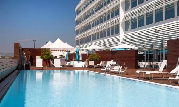 Hotel muy moderno y bonito, con piscina, instalaciones cuidadas, y muy bien ubicado. La ducha con poco agua, lo único