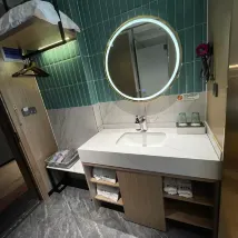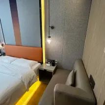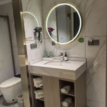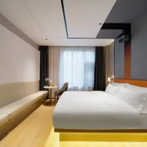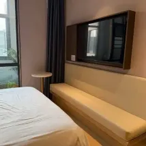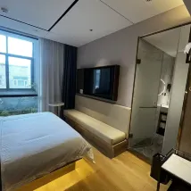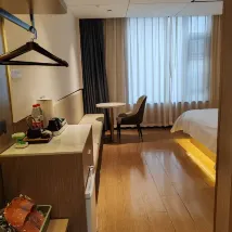 房間舒適乾淨衞生沒有異味,前台服務態度很好,還有一份歡迎水果和離開後的小零食。24小時熱水和空調,全屋可小度智能語音控制,房間隔音效果也挺好的,外賣可以上樓很方便。就在正弘城的對面,下附近地鐵口就能進,地理位置好。也是有缺點的,房間沒有護髮素,房間裏面的小冰箱有異味不建議用。總體來説,很值得入住了!