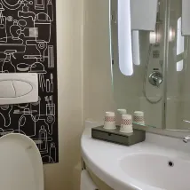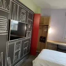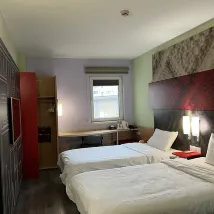 大廳一羣大爺在那打牌,香煙味嗆鼻子。 樓層有點矮,家庭房比較大。 顏色綠色系列,不同於其他宜必思的紅色裝修風格。大廳裏的素描蠻有特色,畫的惟妙惟肖。
