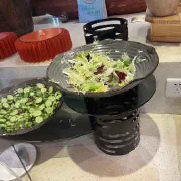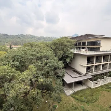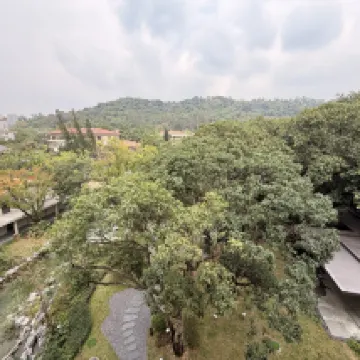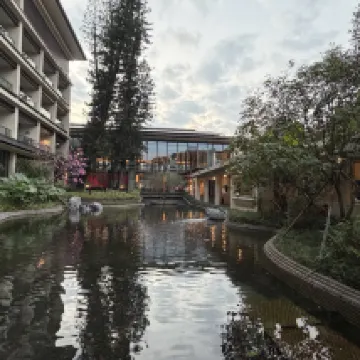 重新裝修過的中心園房間很舒適,寬敞明亮,陽台風景優美,能看到山,安逸怡人。最喜歡還是這裏的園林和大樹,高大綠色的大傘罩着,日夜都很好看,在樹蔭下面泡温泉賊爽!温泉區樓上餐廳中午還有簡餐免費供應,吃點餐可以繼續泡,在温泉區耍了大半天都捨不得走了。湖畔大堂吧也很舒適,點杯咖啡逗逗黑天鵝很巴適。