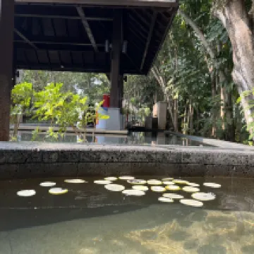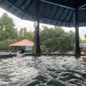 這家酒店真的超大,工作人員介紹説有300多畝,衝著名氣去的,嶺南名湯名不虛傳,全家度假首選 園區是東南亞風情的設計風格,温泉好幾個主要功能區,還有幾十個大個泡池各有特色!體驗了中葯保健區、百花養顏區,還有活力健身區的水療按摩池超受歡迎,還能直接跳進3000㎡山泉水泳池,體驗“冰火兩重天”的快樂。我訂的園景房客房太驚喜了,東南亞風格裝修,陽台對着園林美景,坐在陽台聽歌舒服自在! 服務真的要點贊!電瓶車隨叫隨到,工作人員熱情又貼心,不管是前台還是温泉區的服務人員都笑容滿面。餐飲也沒踩雷,中餐館的廣式早茶必點,品質保證又不貴,温泉區還有免費提供的小米粥和粗糧,暖心又暖胃。園區配套超全,免費停車方便自駕黨,晨跑步道空氣清新,晚上泡完湯還能去休息廳放鬆,整體體驗感拉滿!