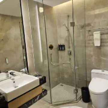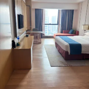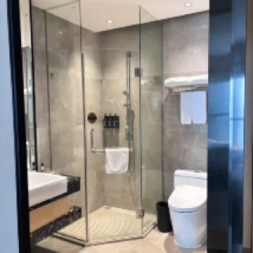 超出預期的一次入住體驗!這個價位能住到這麼好的酒店真的太驚喜了。首先衞生無可挑剔,房間裏沒有一點異味,連衞生間的角落都擦得鋥亮。床很大很軟,一覺睡到天亮。雖然酒店臨街,但窗户隔音很好,很安靜。周邊吃飯購物都很方便,外賣機器人直接送到門口,科技感十足。前台服務很熱情,有問必答。無論是出差還是旅遊,這裏都是高性價比的首選,已經推薦給朋友了!
