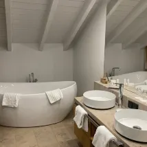 Das Zimmer der Junior Suite war modern, frisch renoviert und hochwertig , auch die Betten, abgesehen von einer in kurzen Abständen laut rauschenden Heizung. Mit dem Service und dem überdurchschnittlich freundlichen Personal, besonders den ukrainischen Kräften, waren wir sehr zufrieden. Völlig unangemessen für den Preis ist der Spa-Bereich. Die große Sauna war gesperrt, die kleine Sauna, in der maximal drei Menschen Platz finden, wirkte sehr abgenutzt, abgeschabtes, dunkles Holz und obwohl sie als finnische Sauna deklariert war, herrschte eine nicht steigerbare Temperatur von nur 60 Grad. Die dürften acht Liegen waren alle belegt und nicht benutzbar. Das Essen ist als lediglich sehr mittelmäßig zu bezeichnen, ohne jede Raffinesse, jedoch sehr überteuert, gerade im Vergleich zu den hervorragenden Restaurants auf der französischen Seite. Abschließend kann man sagen, daß der Service und das Zimmer selbst ausgezeichnet waren, aber das Preis-Leistungsverhältnis und das Angebot in einem Hotel, das dezidiert mit dem Spa-Bereich wirbt, kann nur als desolat bezeichnet werden.