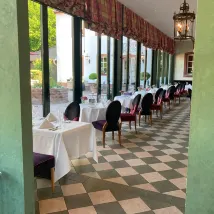 Ansich schönes Hotel mit zwei vom Essen her guten Restaurants in schöner Lage. Insgesamt aber schon auch deutlich in die Jahre gekommen. Stühle im Frühstücksraum an den Lehnen durchgewetzt, das Bad in unserem Zimmer sehr klein, Saunabereich etwas veraltet und in dem langen Flur von der neuen Rezeption zu den Restaurants hin riecht es nach einem Mittelding zwischen Schwimmbad, Bahnhofstoilette und altem Teppich. Schade. Da könnte man mehr draus machen. Das Gebäude ansich und das Drumherum sind nämlich sehr schön.
