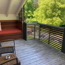 La partie la plus jolie de cet hôtel est indiscutablement l'ancien bâtiment d'origine, surplombé d'une petite tour et donnant sur un joli plan d'eau. L'hôtel est très confortable et les chambres spacieuses. Le SPA est très bien aménagé, avec une belle piscine ronde, 2 saunas, 1 hammam et une salle de repos. Nous avons dîné au restaurant "Landhaus", situé dans l'ancien bâtiment : les plats sont copieux et délicieux. Le cadre, avec cheminée et pierres de taille, est très chaleureux. Le petit-déjeuner est également très varié et très copieux. Un petit conseil : privilégiez les chambres "Designzimmer" orientées vers l'avant, car plus lumineuses que certaines d'entre elles, situées au RdC et orientées côté forêt.