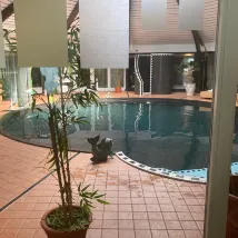 Room does not have airco, day was very hot and therefore night was a pain Restaurant outside is very good as well as breakfast Room from 22 are quite old fashion as well as the inside pool Sauna complex is nice Parking is outside but well located