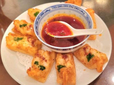 陸羽茶室的招牌是脆皮糯米釀雞。這是一道漸已式微的傳統粵菜。先將全雞去骨但保留完整外皮。再釀入炒過的糯米,吊起淋油油炸。大廚手功不俗,糯米釀得滿滿。切件后仍完整不鬆散。糯米飯料頭豐富,以切粒臘腸膶腸、蔥花和花生粒炒香。滲出的雞油又都滲進糯米飯之中,非常好吃。雞雖只是載體,不是主角,但外皮仍做得酥脆,雞味亦濃,一絲不苟,大讚。