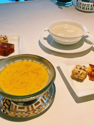 龍景軒,位於香港四季飯店的四樓,長年霸佔米其林推薦榜單三星的位置,可見功力之深厚。在我買好周慧敏演唱會門票的那刻,好閨蜜也訂到了龍景軒午餐的位子,可以說是非常完美了。 因為預定給了窗口位,面對維港風景很好。菜單一看,除了點心,基本都是三位數的,然後兩位數的招牌點心,也是單件起賣的,價錢辣手也是辣手滴。然而依然食客絡繹不絕,不預定你是根本吃不到的~ 我們點了招牌鮑魚雞粒酥,龍梨玉帶香、楊枝甘露、烤乳豬、招牌炒飯等等,基本零差評,尤其鮑魚雞粒酥好吃極了😋服務也非常好,當然買單的時候隨隨便便一個四位數的價格也無敵了 有時候覺得自己真的幸運,在別人忙死忙活的工作日中午,我坐在高大上的四季飯店吃著米其林三星,眼前是開闊的維多利亞海景,吃飽喝足還不用自己掏錢,真的日子也太好過了吧。感謝閨蜜愛我😍我要好好珍惜^_^