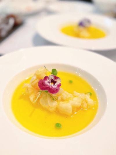 在《米其林2021香港澳門指南》公布的今日發一則有關米其林星級中菜廳,前不久才去用餐🍴的食評吧這家在香港頗具名氣的中菜廳就是“明閣”,他們自港澳指南出現后連續十幾年(2009-2021)都穩坐一星或兩星,位於香港康得思酒店Cordis Hong Kong🏨內,用餐區域裝潢典雅,餐廳提供各款精美佳肴,包括水準卓越的自製點心。雖然餐廳位處旺角的黃金地段,但自己不常在旺角朗豪坊一帶活動,難得相隔十載后再訪,這次除了叫了幾個點心外,也要了兩道精選的得獎名菜。【口味】先說一下他們著名的即焗鮑魚雞粒穌,擺盤精緻,用上原只干鮑即制,再配以解膩的普洱茶,是誠意十足之作。我們也點了上素羊肚菌春卷和養生三色餃,其中三色餃的外皮色彩繽紛,三種顏色分別有不同的餡料,綠色的是牛肝菌榆耳菠菜餃,橘色的是杞子鮮蝦蟹肉甘筍餃 ,紅色的則是帶子羊肚菌紅菜頭餃,味道不錯。至於得獎名菜就選了“如意三弄”及“龍皇披金甲”兩道,都是十分有創意的菜品,特別是“如意三弄”里的話梅帶子凍,最初很難想像話梅果凍里配一粒帶子是怎樣的一回事,不過入口后的感覺還是挺搭的,酸甜中帶有一點鮮,挺有趣的。本來想再嘗燕晶凝的名點,但侍應表示當日沒有供應,所以最後叫了“流沙楊梅”作甜點結尾,香脆的紅菜頭糯米外層內配以山渣草莓醬,令人食指大動。【服務】整體而言我對“明閣”的用餐體驗表示滿意,他們菜品走的是新派粵菜風格,具創意的同時也不會跟傳統粵菜產生違和感,雖然用餐當日在我的觀察中感覺到餐廳的人手有點緊湊,但服務人員還是專業勤快,態度友善。【環境】順帶一提如果對藝術感興趣的食客在用餐前後不妨也可以去看看放置在酒店或餐廳內的當代藝術品🎨,當日酒店的禮賓司還有跟我做了簡介,原來學貫中西的藝術大家吳冠中先生其中一幅畫作也在裏面呢。