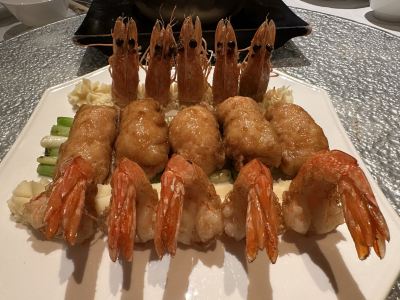 我對明閣的執念和喜愛,大概就是距離產生美。太遠了,真是太遠了,所以去一次我吃得很珍惜。如果近一點,可能已經吃過好幾次反而不留念想了。▹野菜石榴果一吃定情!真真是我見過最大的百恭弘=叶 恭弘包了。極薄極韌的豆皮把切碎的馬蘭頭、木耳、馬蹄和香菇裹成一個個圓鼓鼓胖乎乎的石榴果,就這麼敦實的坐在黃瓜汁里。一口咬下去爽脆多汁,迸發出清涼鮮香,如身處竹林清風拂面。野菜的鮮香無需多餘的調味就夠迷人了。▹梅菜黑豚叉燒腸粉腸粉皮偏厚,倒是能吃出黑豚叉燒的香甜,但梅菜香味存在感實在太低,中規中矩。▹野菌和牛千層酥酥鬆的外殼入口即化,冒着熱氣的燙口內餡鮮香四溢,這種香酥可口的小點心從來不會讓我失望。▹傳統雞蛋撻薄脆的港式酥皮層層相疊成撻底,小心翼翼地托住滑嫩極了的蛋撻餡,純純蛋奶香在撻皮的黃油香氣中更加濃醇。小小的蛋撻做得這麼細緻優秀,都把我吃感動了嘞。▹脆皮炸子雞大老遠來,招牌的脆皮雞還是要吃一吃的。薄如紙片的脆皮,柔嫩多汁的雞肉,中間一層恰到好處的油脂,層次分明,濃郁咸香不掩雞的本味,棒棒棒!▹吊燒江鰻魚薄薄的鰻魚肉帶不來口感的鰻魚,肉質也略偏老偏干。老太婆抹上粉就能變少女嗎?能嗎?!有點檸檬別人來吃到的肥厚江鰻,大概我這條在減肥吧。▹xo醬鮮蝦野米炒飯用料滿滿的這盆飯一上桌我就覺得穩了,賣相很ok,興沖衝來一口emmmm,講道理,對於炒飯而言,只要飯粒口感到位,配菜真材實料炒進去,怎麼也不會難吃,但也確實沒我預期的好。味道很淡,更別提xo醬的鮮香了,真的好可惜。▹雪燕楊枝甘露這種類型餐廳的楊枝甘露都大同小異,很少有難吃的。明閣的這碗加了雪燕,又仙氣縹緲,自然會讓人多幾分期待。味道是還可以的,果香馥郁甘甜可口,可惜質地偏稀了,我更喜歡略稠的。不是誰的錯,但我們不合適