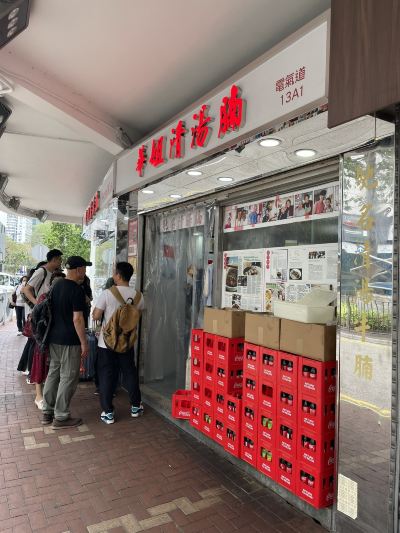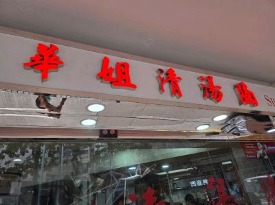 華姐清湯腩是銅鑼灣附近乃至整個香港非常出名的小吃。經營了非常多年,經過的幾次翻新,至今仍然保持着不大的店面,並沒有刻意的去盤下大場地,華姐說那樣會提高經營成本。店招下面有華姐與很多明星的合影,其中包括了發哥,Eason等。清湯男和咖喱男的味道各不相同,配上地道的本地粉,吃起來一個舒坦,關鍵還有,價格真心不貴。