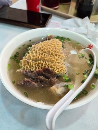 這裡的牛腩麵賣相不錯,麵煮的爽口,飲湯有蔥花香但偏鹹。金錢肚,腸,膀,肺都夠夠味,又只有鹹味。牛腩肥瘦相間,不韌,但還是隻得個鹹字!味道還是不錯的。