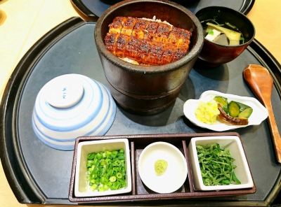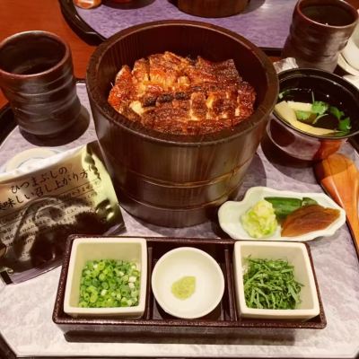 說到鰻魚三吃,端上來會有一個木盆,裏面就是鰻魚蓋在飯上,一個裝了蔥花等配料的碗。感覺吃的不僅僅是鰻魚,還有滿滿的儀式感。個人最喜歡第二吃豐富的味覺層次感。