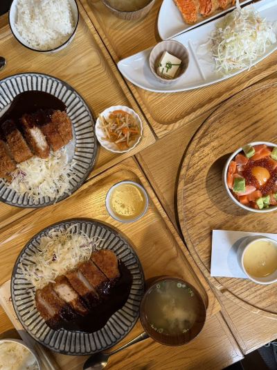名古屋一家連鎖炸豬排店,炸豬排名古屋特色美食之一。店內有會中文的服務員,給詳細解釋了下菜品區別,因為自己看菜單真是看上去都是炸豬排沒什麼區別。主要是豬的品種不同,炸豬排很香,點的一份套餐是已經澆好醬的,另一份套餐是沒有澆醬配了兩份不同的醬,米飯可以免費添,有四種米飯可供選擇。