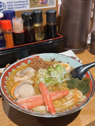 弟子屈拉麵(橫丁店) 來北海道總歸要來吃拉麵的,媽媽在札幌橫丁隨意選了這家,還不錯。機器上自助下單付款。魚介醬油拉麵 980日圓 這個是招牌,必點的鹿肉叉燒味增拉麵 1380日圓湯頭濃郁,麵條普通,肉肉大塊厚的,溏心蛋也可以,缺點是裏面的筍有味道。
