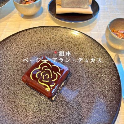 Beige Alain Ducasse(東京店)位於東京都中央區Ginza3-5-3Chanel Ginza Bdg 10F 104-0061,餐廳在銀座香奈兒大廈的頂層。我們拿到了招牌菜單,飯菜和想象中一樣好吃。只是對備受期待的甜點“巧克力茶花”略感失望。這是一種香奈兒標誌花形狀的黑色巧克力蛋糕,本來應該是比較適合發到社交應用上的。然而廚師把它放在一個黑色盤子裡,蛋糕的美感完全看不出來,真是浪費。我們離開的時候還收到了茶花狀巧克力的禮物。