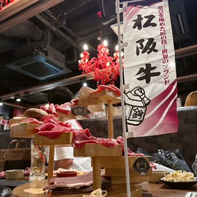俺的燒肉,去到的時候人也不算特別多!我們6個人點了,松坂牛特選豪塊大桶盤(1Kg)19800日元,因為那個服務員說我們會不夠吃,所以我們還點了,松坂牛特等五種拼盤(300g),5980日元。但最後我們都覺得其實不需要加後面的拼盤,因為和牛吃多了還是蠻膩的,所以大家可以先不要點那麼多,吃到一半真的不夠再加!因為我們點了最貴那個拼盤,所以很尷尬的一件事是店員端上來的時候會敲鑼打鼓,然後全店的人都會看過來。雖然我也分不清拼盤裡的肉是什麼,但我覺得都是好吃的!和牛紋理清晰,油脂豐富,入口超級嫩,可以說是入口即化了!吃完這頓讓我們那幾天都不想吃肉了。然後它規定每個人都需要點一杯喝的,所以我們最後人均花了370人民幣,我覺得還是划算的啦!