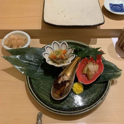 蛤蜊熬的湯沖北海道紫海膽和鹽水海膽;蛤蜊熬的湯鮮味馥香衝擊力貫穿嫩滑的海膽,湯鮮味氤氳而起,入口暖鮮開胃~初冬還有的一點寒意被祛除,脫了外套喝杯酒開吃。
