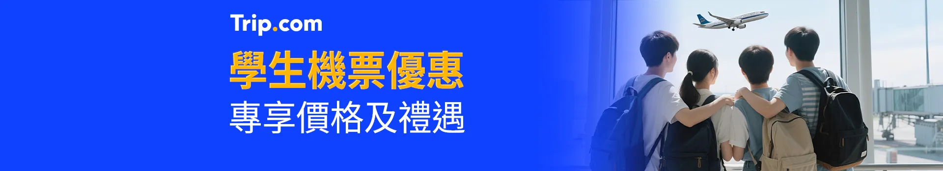 此推廣活動由 Trip.com Travel Singapore Pte. Ltd.(「Trip.com」)負責。 推廣平台:Trip.com 網站、App 及手機網站(英文版)。 目前就讀授予學位的學院或大學的所有學生均可享票價優惠。 預訂學生優惠票價,即表示您同意此等條款以及 Trip.com 的一般條款及細則。 如果您違反此等條款或我們的一般條款及細則,Trip.com 保留取消任何訂單的權利。 為了確認您是否符合資格使用此優惠,您需要上傳文件以驗證您的身份及資格。文件可以是您的學生證及/或大學/學院錄取通知書。所有資料,包括與此推廣活動相關,提交予 Trip.com 及/或其關聯公司或其已知的個人資料(「資料」),將僅用於此等條款及細則及 Trip.com 私隱政策 (https://pages.trip.com/service-guideline/privacy-policy-zh-hk.html)(「私隱政策」)中列明的目的,並按照此等條款及細則及 Trip.com 私隱政策進行處理。 航空公司亦會要求您在辦理登機手續時出示您的學生證明文件。 如未能驗證您的學生身份,您的訂單將被取消,並可能產生取消費用。有關適用於您訂單的費用資訊,將於預訂過程中提供。 所提供的具體優惠將因所選的航空公司及航班而異。有關航班提供的優惠詳情,將於預訂過程中顯示。 價格以發佈當刻為準,並會視乎供應情況及更改而定。請參閱最終預訂頁面上顯示的實際價格、條款及細則。 在法律允許的範圍內,不論基於合約、侵權(包括因疏忽而構成之侵權)、違反法定責任或其他相關原因,Trip.com 將不會就銷售學生機票引起,或與此相關之任何損失、損毀、開支、成本或索償承擔任何法律責任。 Trip.com 保留隨時取消或修訂推廣活動和條款及細則之權利,恕不另行通知。 如 Trip.com 認為有可能危及此推廣活動過程的不可預見事件,Trip.com 保留酌情決定終止或暫停此推廣活動之權利,且不對您承擔任何責任。 Trip.com 保留此推廣活動之所有最終闡釋權。 此推廣活動之條款及細則須受新加坡共和國的法律管轄及規管。所有由此等條款及細則及/或此推廣活動引起之爭議須接受新加坡法院的專有審判權所限。
